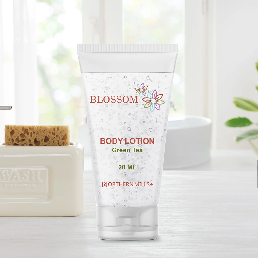 Our Blossom Green Tea Body Lotion is tailored to meet the high standards of the hospitality industry. It is packaged in a 20 ML tube that fits perfectly in guest amenity kits. The design meets the practical needs of busy hotels and spas. This product is tested for quality and safety. It supports a premium guest experience in every room. The lotion is presented in elegant packaging that reinforces a luxury brand image. Bloom Linen products help properties stand out by offering thoughtful amenities.