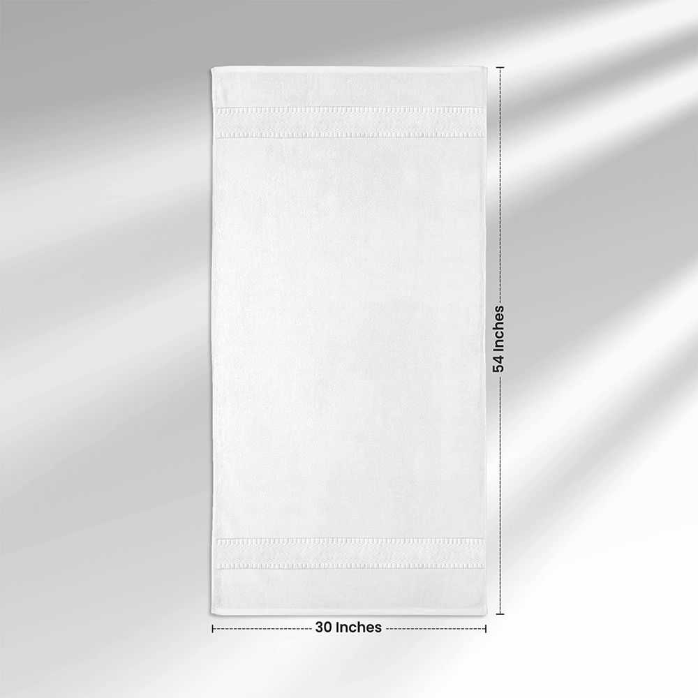 Our Kashmir White Bath Sheets are made from premium cotton. The fabric is soft, plush, and highly absorbent. Guests enjoy a luxurious drying experience after a bath or shower.