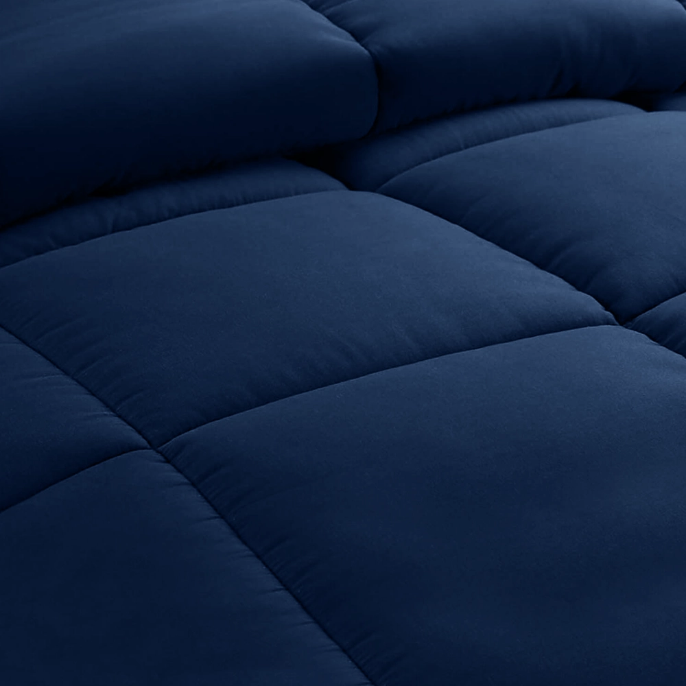 Our products are tested rigorously in simulated commercial environments to guarantee their performance under heavy use. We proudly supply a navy blue premium comforter in double size that consistently delivers high performance for our business partners.