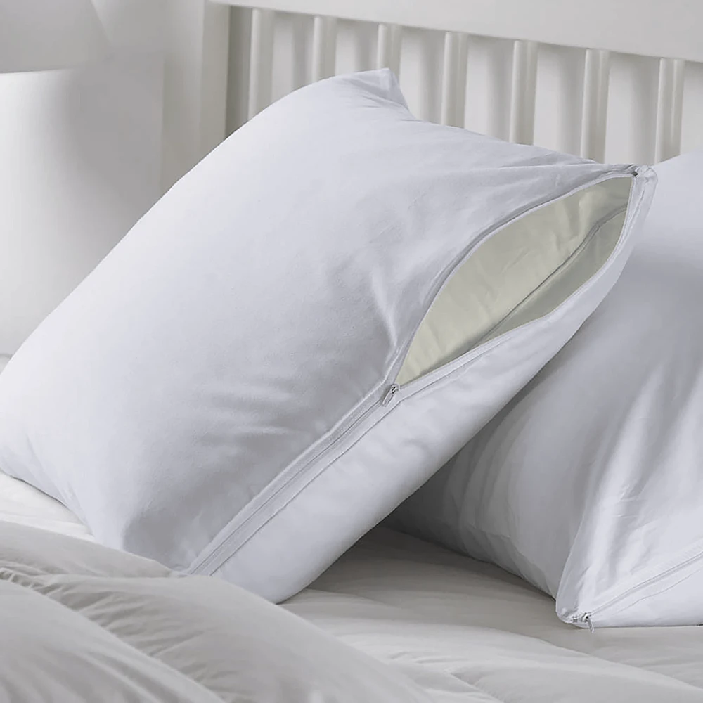 A king-size pillow protector is a cover made for bigger pillows. King-sized pillows are larger than normal pillows, so they need a bigger protector to cover them. Bloom Linen makes soft cotton protectors for king-size pillows to keep them safe from dirt, dust, and spills. These protectors also help your pillow last longer and stay clean.