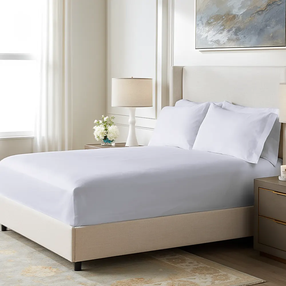 Its fabric remains soft, lightweight, and breathable while providing effective moisture wicking and temperature regulation consistently. Neat hemmed sides help avoid fraying and keep the bedsheet intact through frequent commercial laundering cycles in hotels.